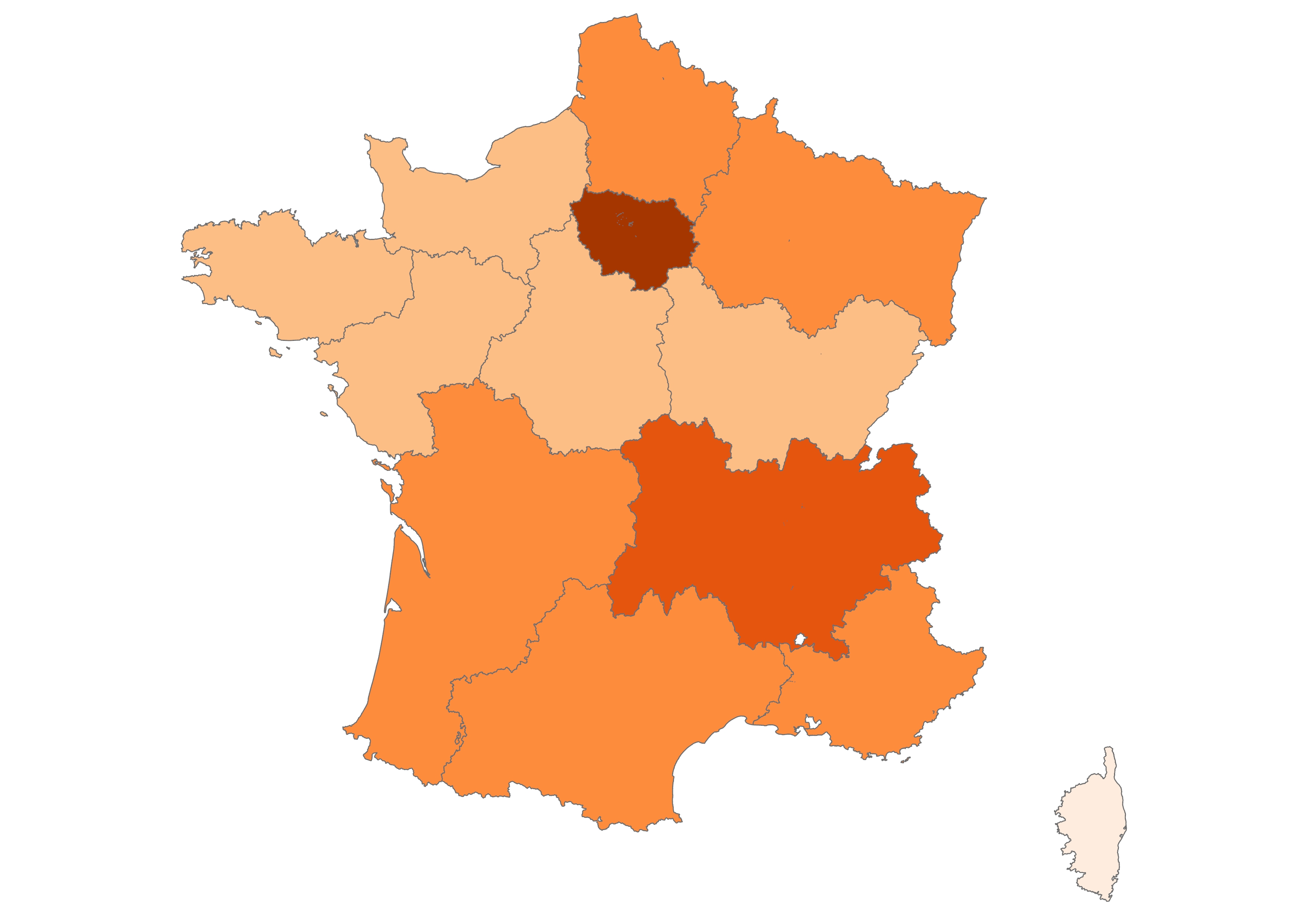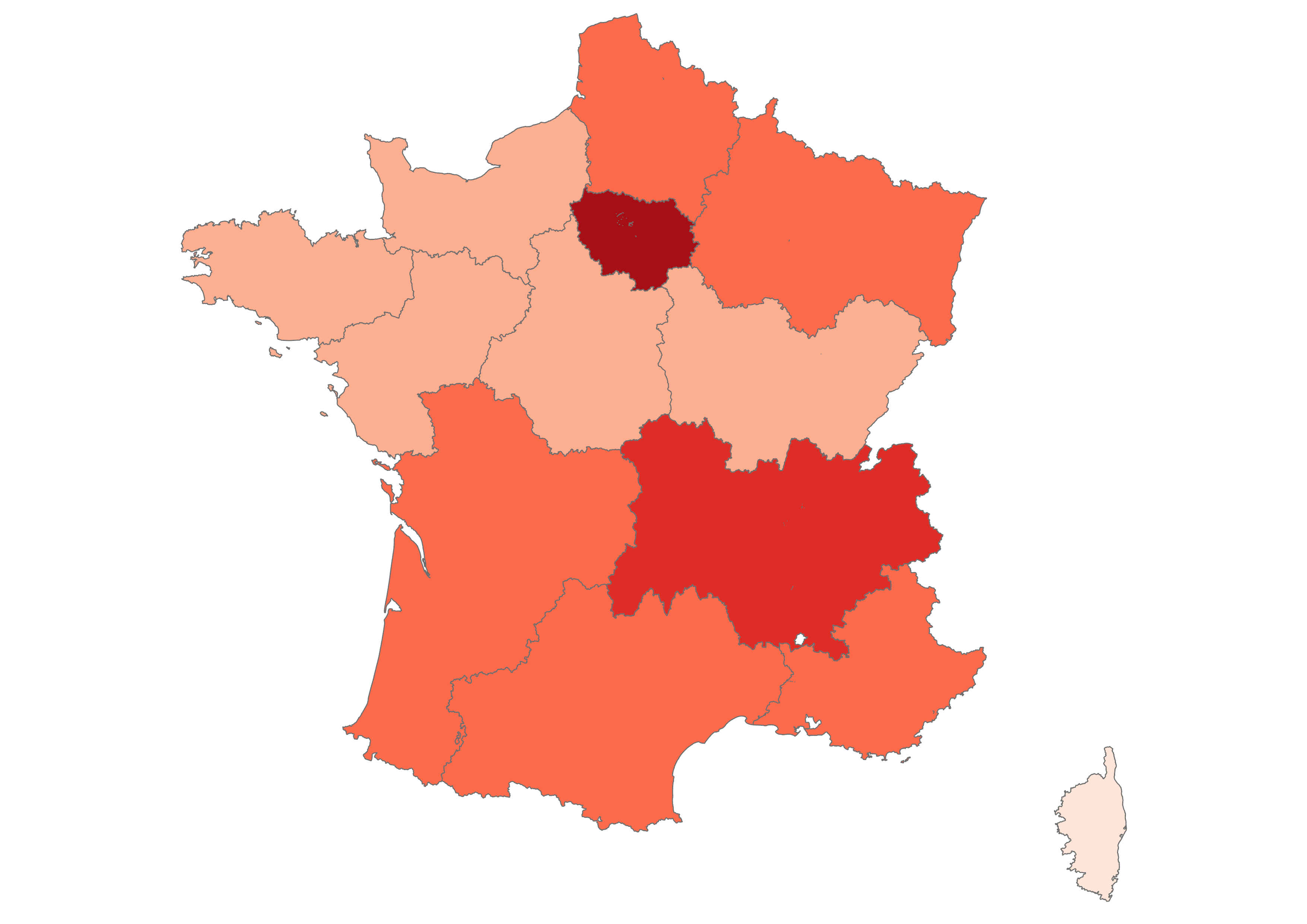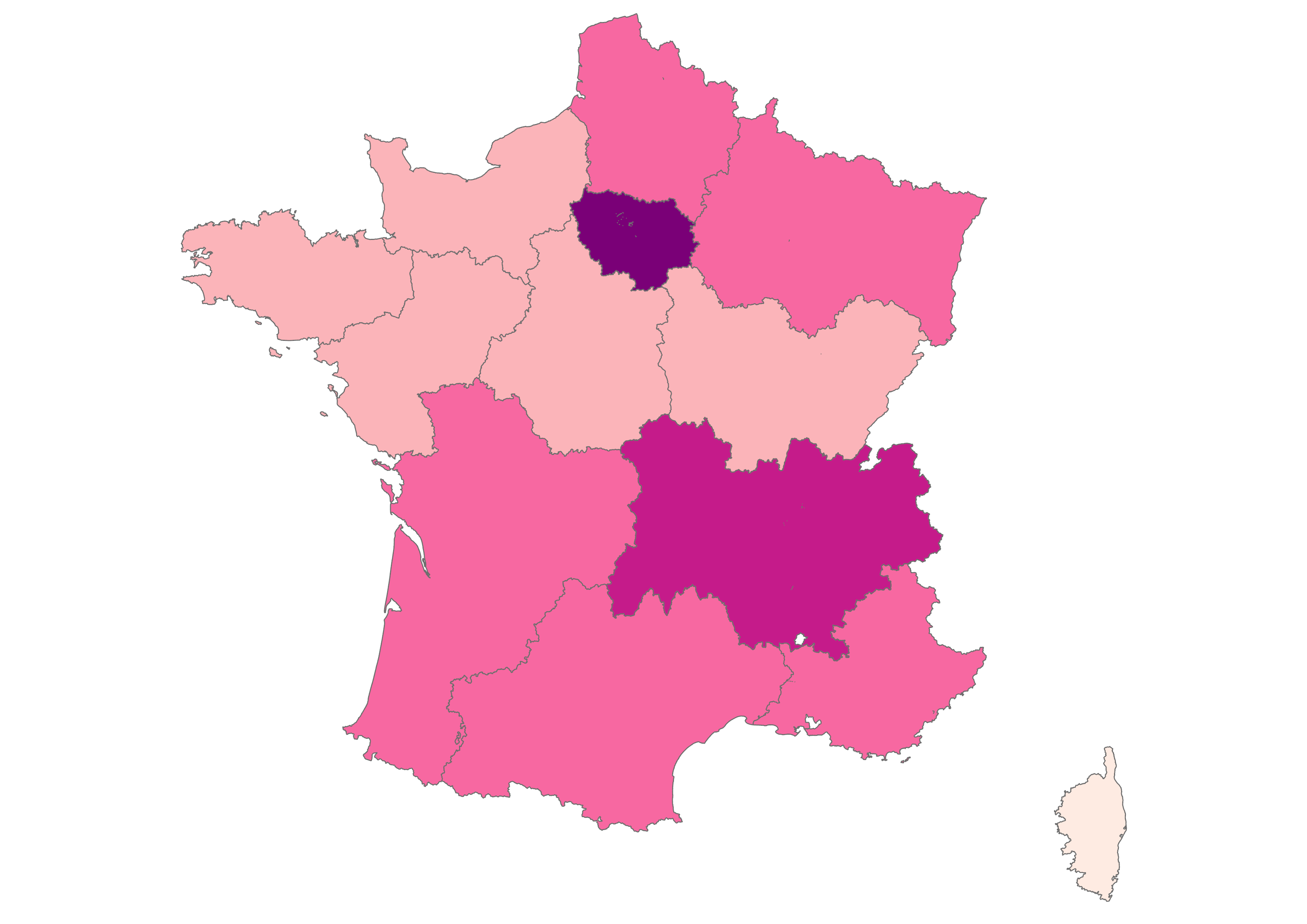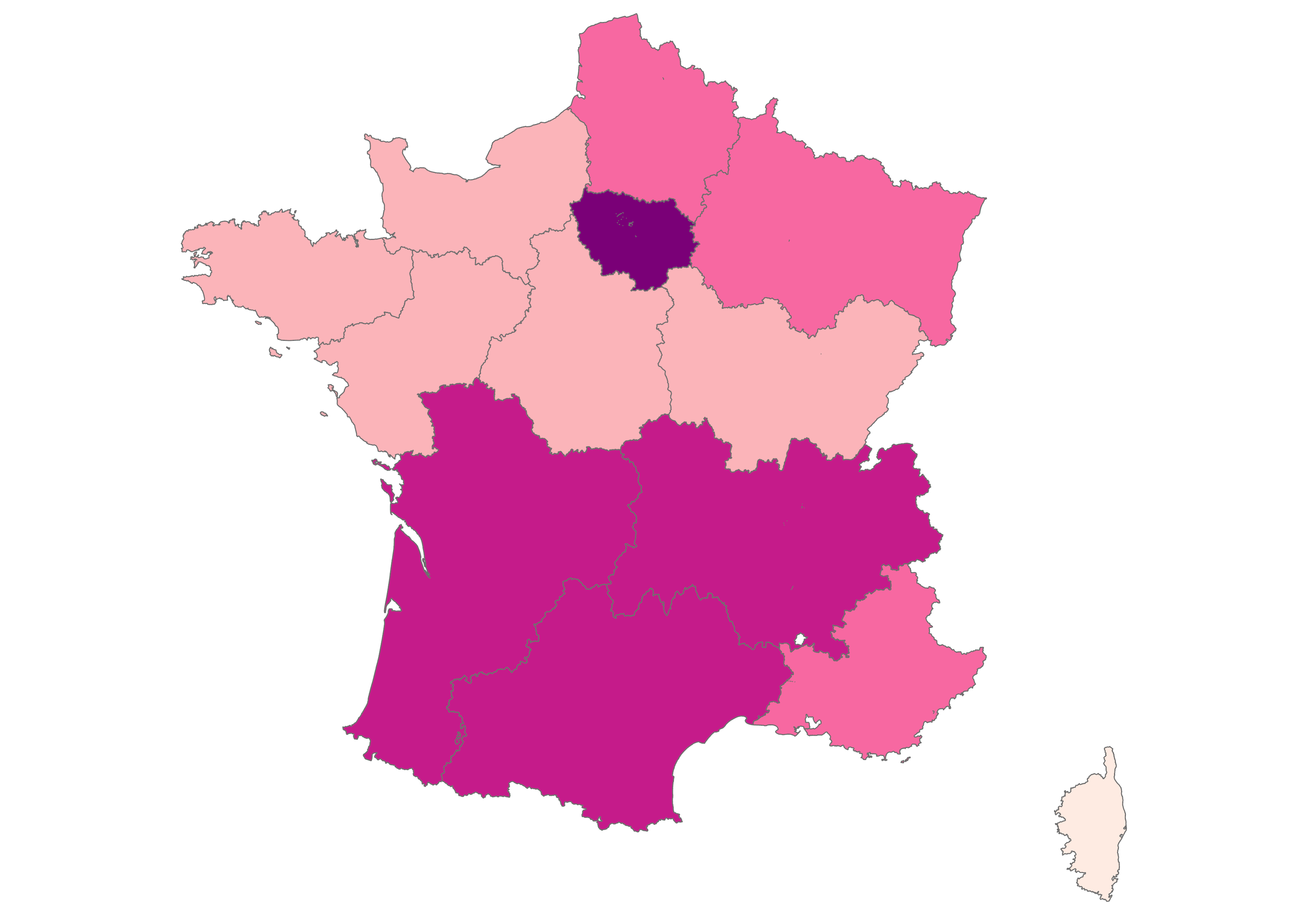 Our focus is on the thirteen metropolitan administrative regions of France, which you can explore in the maps below. Click the arrow to see climate change-related questions and statements and explore the attitudes of each region