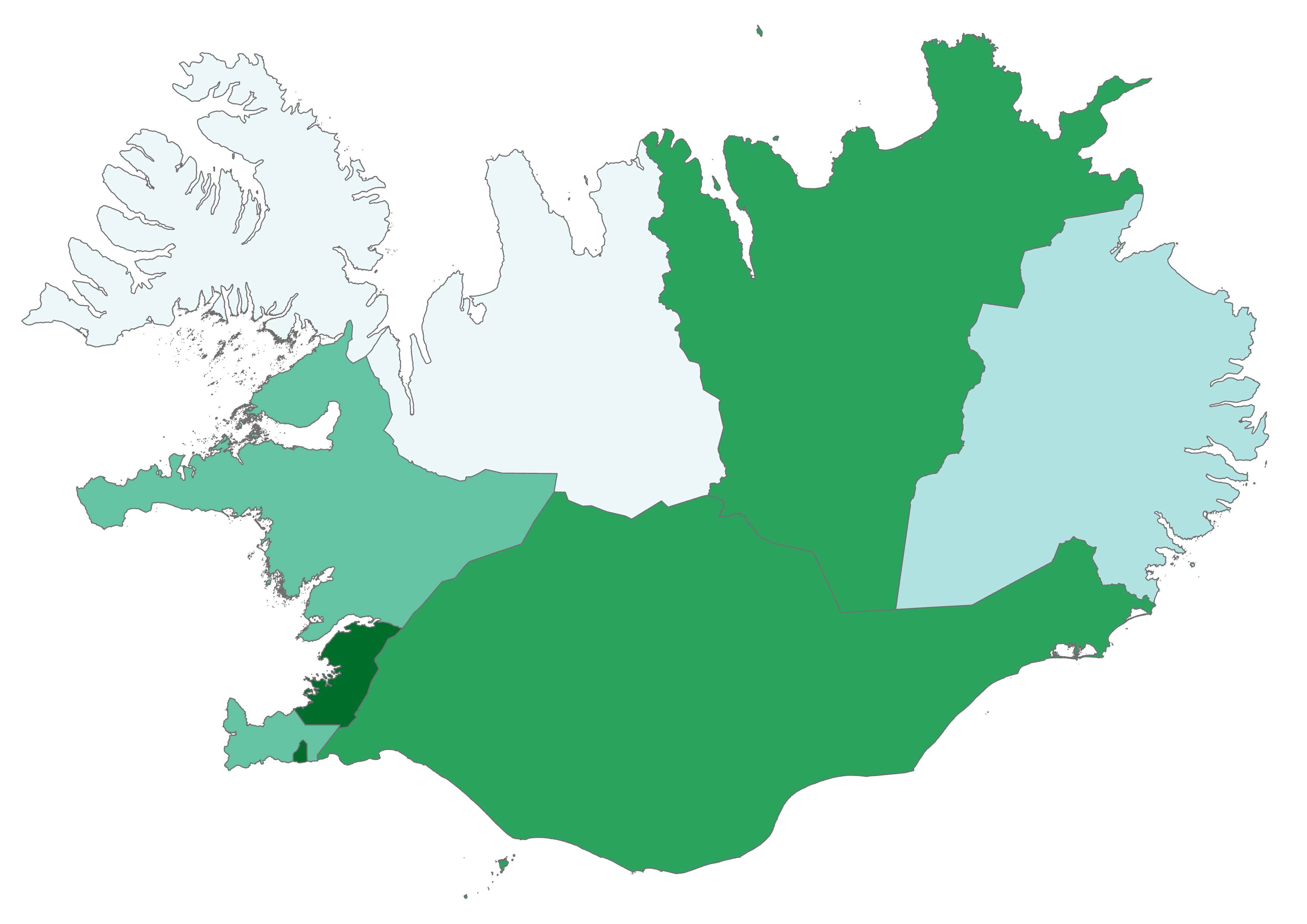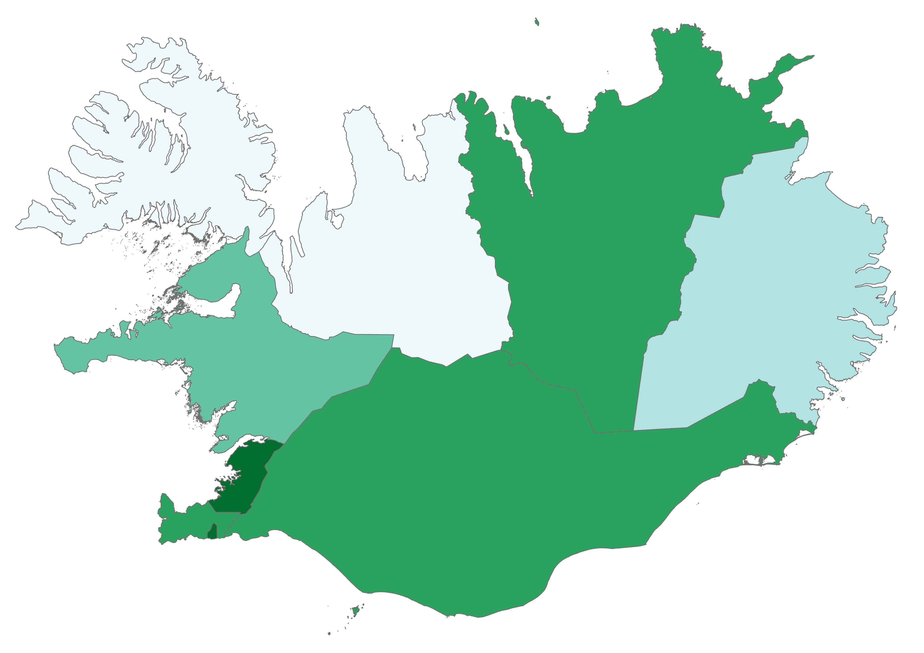 Iceland has eight regions. Click the arrow to see climate change-related questions and statements and explore the attitudes of each region.